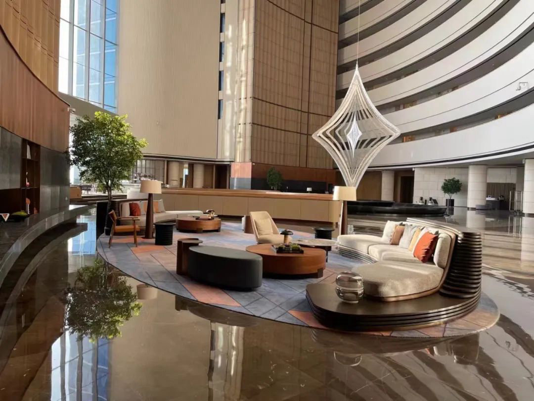? ? 在酒店的大堂休息區(qū)域,映入眼簾的藍(lán)色伴隨著海洋的香氛,地毯的設(shè)計與酒店整體風(fēng)格相吻合,以海為出發(fā)點(diǎn),采用了大量海洋元素,生動形象,豐富多彩。