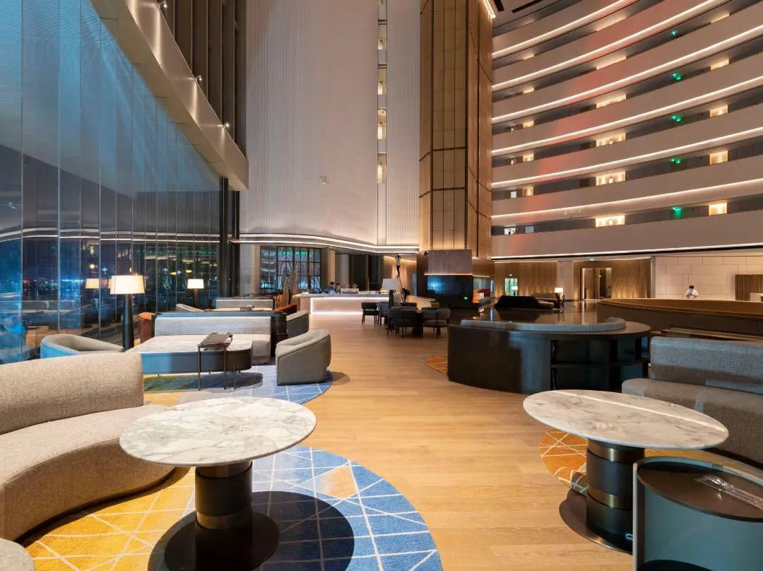 ? ? 愜意的休閑區(qū)域除了提供便捷簡餐或小憩之所,還能讓賓客在此工作社交或在一天忙碌之后放松自我。地毯的色彩設(shè)計結(jié)合酒店整體的裝修風(fēng)格和海濱城市的特點(diǎn),生動形象且富有韻味營造出獨(dú)特的藝術(shù)氣息,當(dāng)陽光透過落地窗時,舉手投足間便能感受到海邊風(fēng)韻。 ?