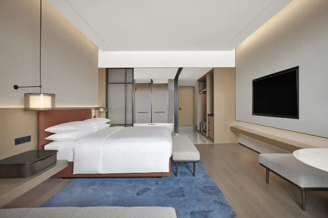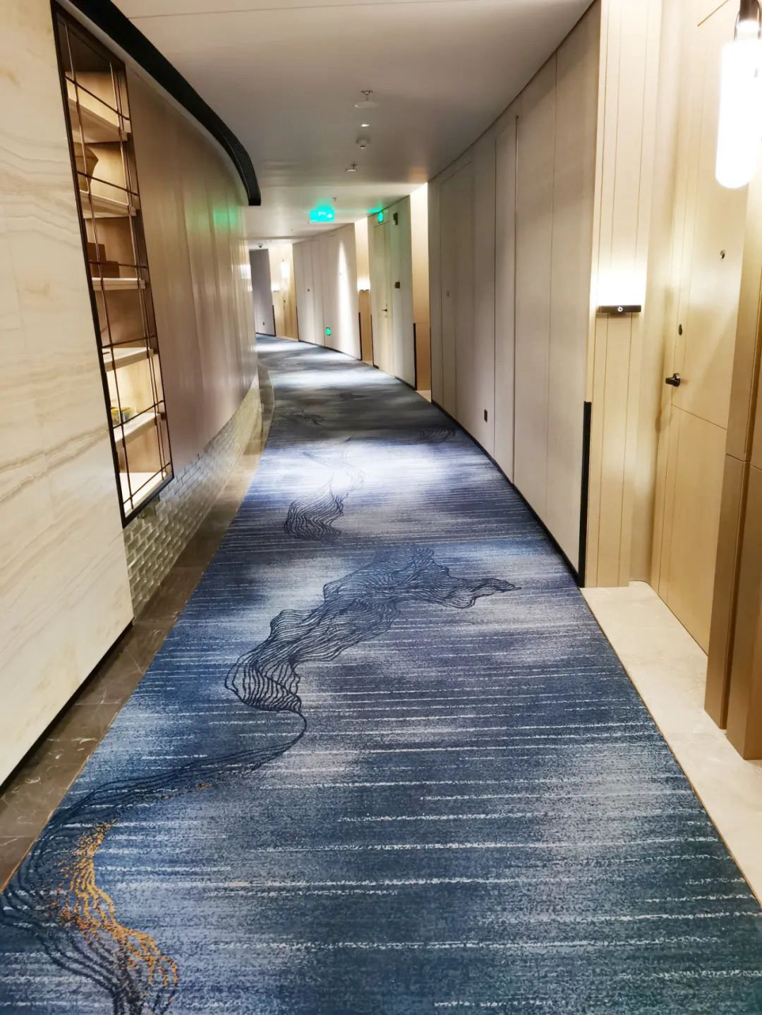 ? ? 客房外的弧形走廊使用阿克明斯特地毯,在毯面平整,花型豐富的特點(diǎn)下,還具有穩(wěn)定性、耐用性、舒適性高的優(yōu)點(diǎn)。其色調(diào)與門內(nèi)的客房地毯相呼應(yīng),將帶給賓客一個特別的體驗。?
