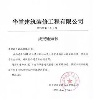 ? ? 2018年1月份,大會(huì)堂貴州廳裝修改造,地毯臨時(shí)更換為尼龍印花地毯,簽訂尼龍印花合同216平米,此為第一次與大會(huì)堂管理局下設(shè)裝修公司合作,該地毯在18年11月正式更換為手工地毯,簽訂手工地毯合同181.48平米,隨后在18年12月中標(biāo)云南廳手工地毯,簽訂310平米,19年6月份中標(biāo)香港廳地毯采購(gòu),簽訂合同592平米。