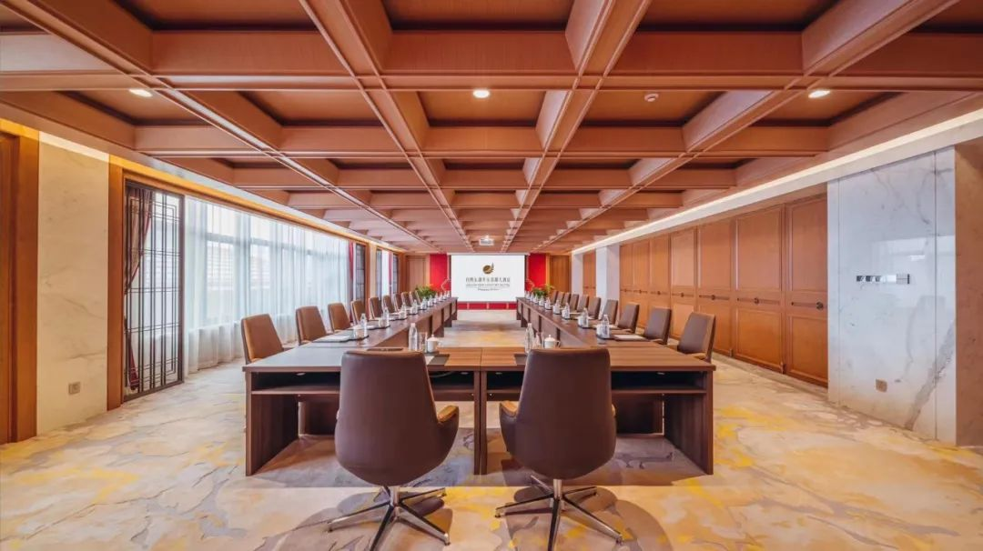? ? 會(huì)議廳以木質(zhì)為主的桌子搭配皮質(zhì)座椅,展現(xiàn)出中式委婉的氣質(zhì),單側(cè)近乎整墻的窗戶,不僅保證了采光,更將古風(fēng)與現(xiàn)代完美結(jié)合。室內(nèi)整體的木質(zhì)裝修,加上地面暖色調(diào)寫意地毯,讓新中式的空間配色,變得更加自然貼合。